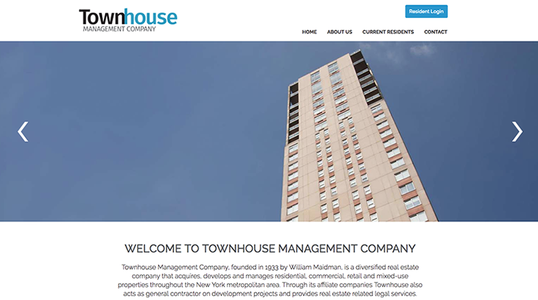 Townhouse Management Company, founded in 1933 by William Maidman, is a diversified real estate company that acquires, develops and manages residential, commercial, retail and mixed-use properties throughout the New York metropolitan area. Townhouse called on Chrein.com for a complete redesign of its website with a responsive interface, a new logo, and guidance/consulting in making its third-party client portal more accessible.